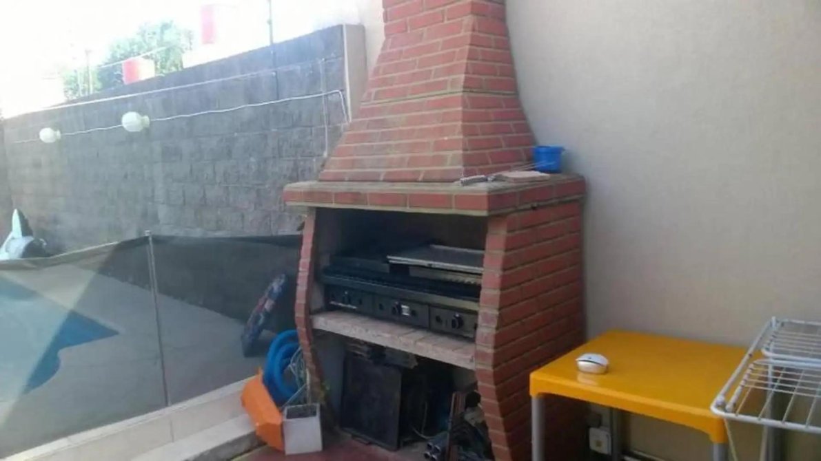 Garage para dos autos, entrada pasante hacia el jardín, patio, parrilla a gas, pileta con calefactor de agua, solarium, cerca para protección, tanque de agua a buena altura.